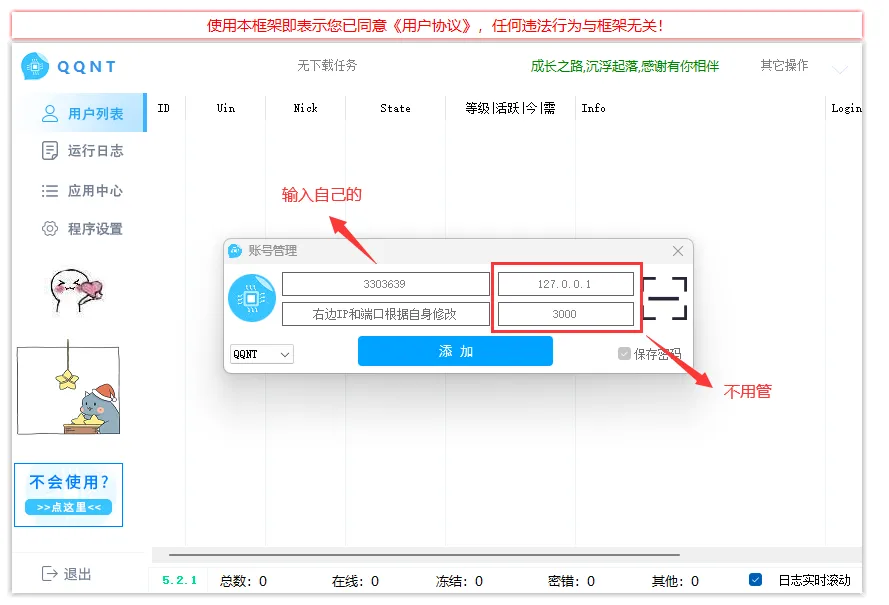 1.1 解压/打开七七NT框架,输入机器人QQ号