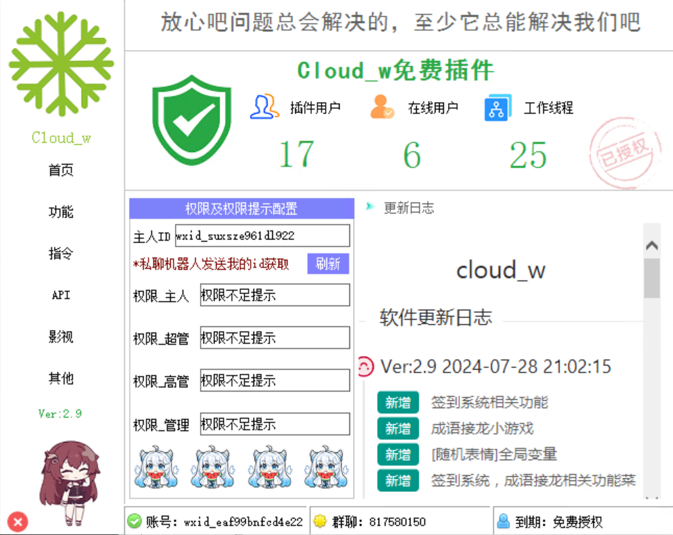 注册账号仅用于统计插件使用和在线人数,如介意请勿用