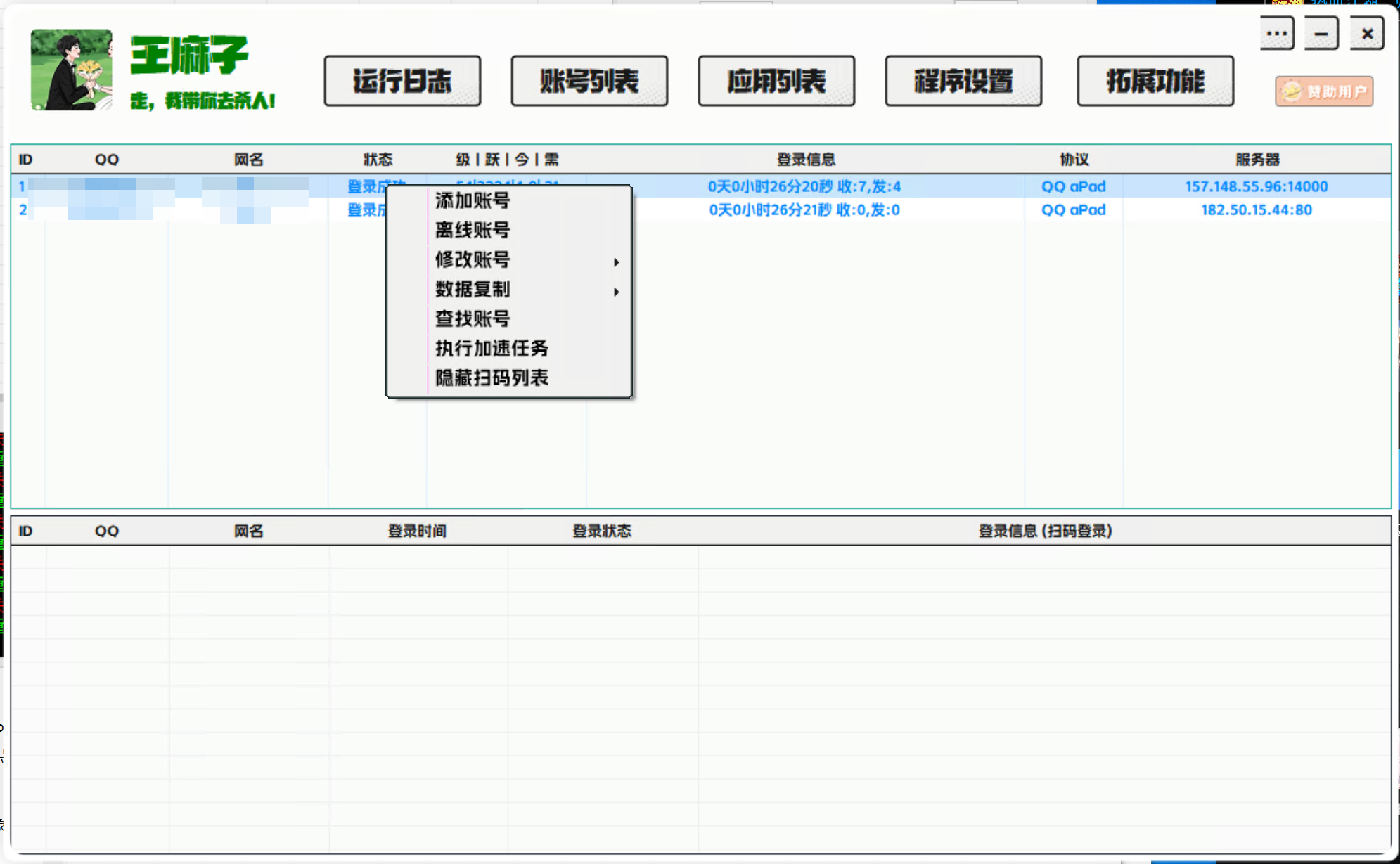 新增了很多框架功能,可以载入小栗子插件,可以实现在一个框架上指定QQ调用指定多个或者单个插件,也可屏蔽,自行探究