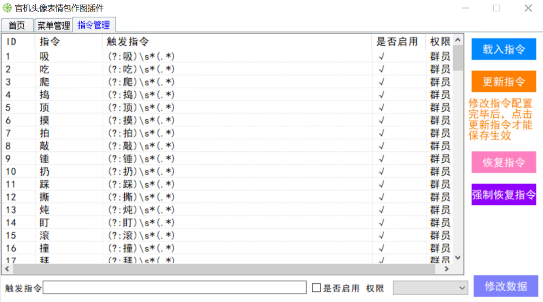 如果您授权到期,则只能使用:「刷新指令」或「强制刷新指令」来同步官方指令文件。