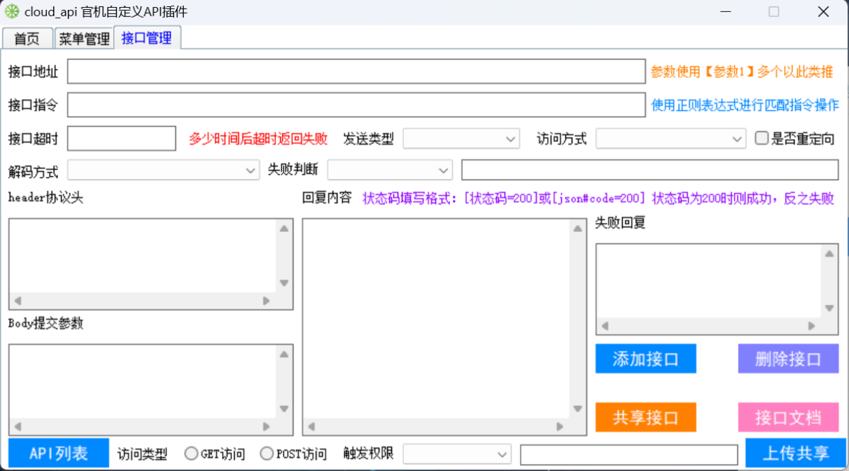 使用教程-通过cloud_update.exe下载到插件后,需要重命名插件为cloud_api.dll。该插件的名称为:cloud_api.dll,目前插件兼容bee官方机器人框架,无后缀名,直接以.dll结尾。插件安装-下载插件后,将插件放入机器人框架的plugin目录下。启动机器人,插件即可自动加载。启用插件后,打开插件设置页面,填入自己的QQID。[QQID获取方式:艾特机器人+我的id,即可获取到自己的QQID]第一次使用插件时,进入菜单进行恢复菜单上述操作完成后,需要设置开启命令和关闭命令,方便某些特定群的开启或关闭。完成后,即可进行添加自定义API关于授权-目前插件完全免费,无任何收费功能。插件文档-您好,本帖含有特定内容,请回复后再查看。